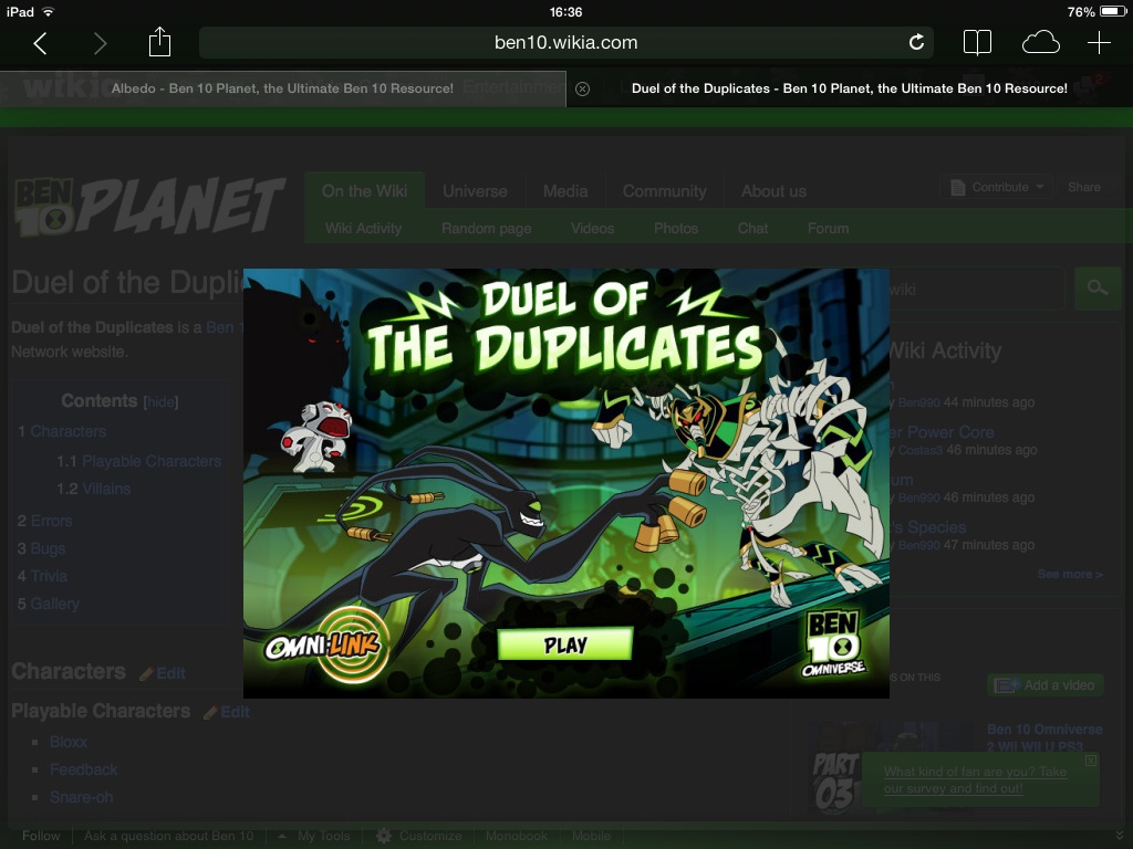 Play the free ben 10 omniverse game, duel of the duplicates and other ben 10 omniverse games at cartoon network. The game has been played 18567 times so far and has received a rating of 90 / 100 from a total of 1699 user votes, 1537 likes and 162 dislikes.